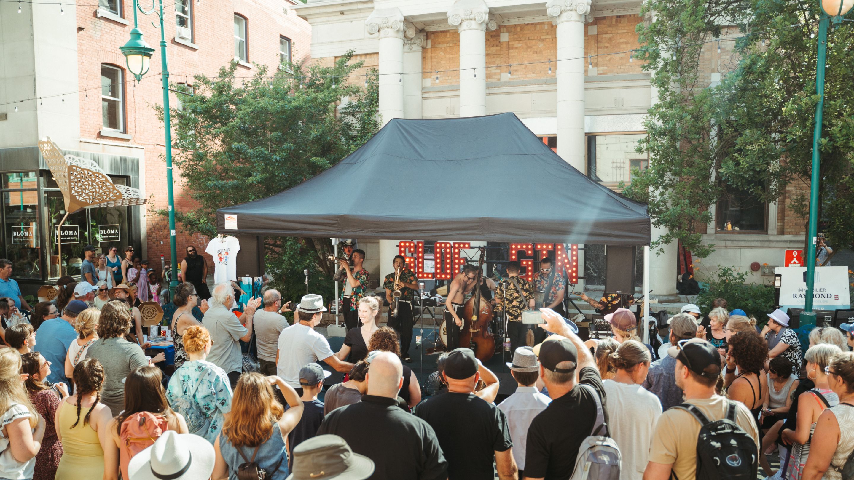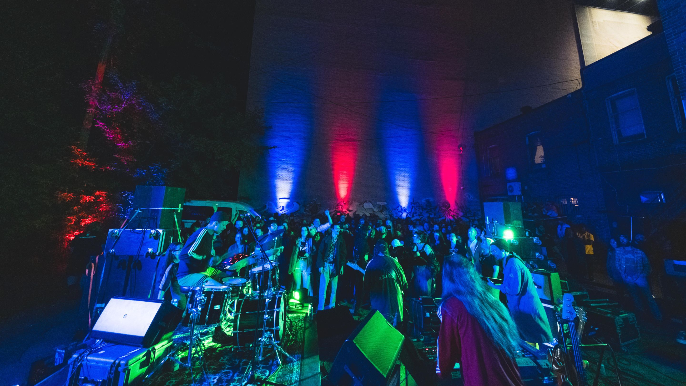 Scène extérieure située sur la rue Meadow qui met de l’avant la découverte d’artistes émergents.